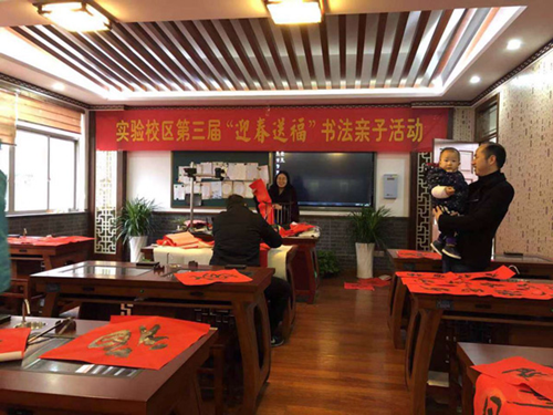 2018年12月29日,浙江省寧波市寧海縣實驗小學舉辦了一場充滿文化氣息和家庭溫情的“迎春送�!庇H子書法活動。前來參加親子活動的有祖孫,也有父子,小朋友們絲毫不輸氣場,與父輩和祖輩爭相揮毫潑墨,濃郁的藝術氣氛和親情溢滿全場。