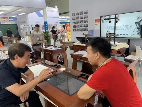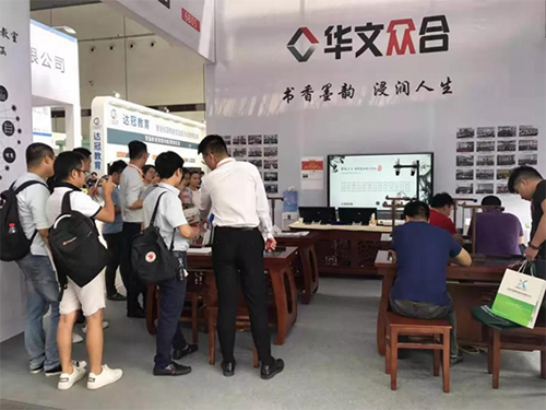 《中小學(xué)智慧書法教室裝備規(guī)范》團(tuán)體標(biāo)準(zhǔn)的牽頭制定單位華文眾合參加了此次展示會(huì),并展出最新產(chǎn)品——第五代智慧書法教室,受到大批觀眾的喜愛。展示會(huì)期間,多位行業(yè)協(xié)會(huì)領(lǐng)導(dǎo)蒞臨華文眾合展位進(jìn)行參觀指導(dǎo)。