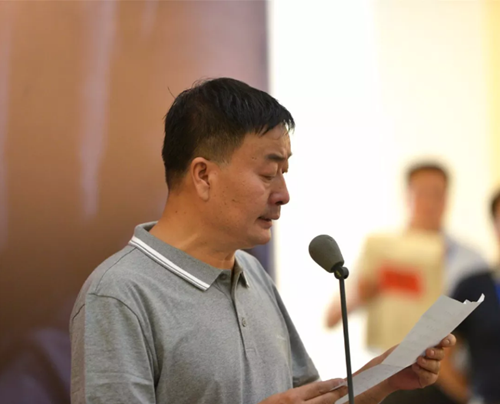 高軍法在答謝辭中表示,自己是懷著感恩激動的心情向人民、向社會匯報書法創(chuàng)作成果,也是一次與同仁切磋藝術(shù)的機(jī)會。從軍40年,寫字50年,今天展覽的81件作品,是他贊頌新時代、激勵新征程,為建軍92周年和建國70周年獻(xiàn)上的一份祝福。