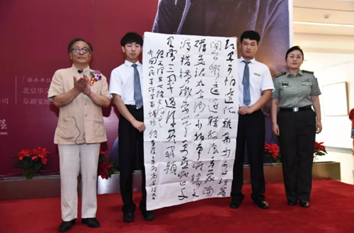 在傳承弘揚書法藝術(shù)的同時,高軍法傾心于社會公益和愛心活動,對國內(nèi)重大災(zāi)情捐款捐物,資助多地貧困鄉(xiāng)村建渠修路,為小學(xué)校捐資助學(xué),展示了書法藝術(shù)工作者的社會責(zé)任。在開幕式上,高軍法向中國國家畫院、軍事博物館、解放軍儀仗隊、北京市第二實驗小學(xué)捐贈了書法作品。展覽結(jié)束后,所有展出的書法作品將捐贈給政府和軍隊有關(guān)單位、社區(qū)和中小學(xué)校。
