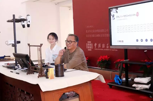 高軍法給書法愛好者進(jìn)行現(xiàn)場(chǎng)演示