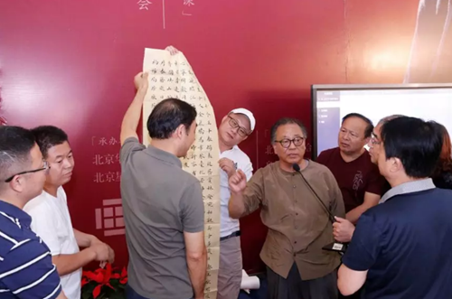 8月1日上午,軍旅書法家“高軍法書法匯報(bào)展”在中國(guó)國(guó)家畫院美術(shù)館開幕。為答謝廣大書法愛好者,8月2日上午,高軍法再次來(lái)到展覽現(xiàn)場(chǎng)與書法愛好者進(jìn)行了交流互動(dòng)。