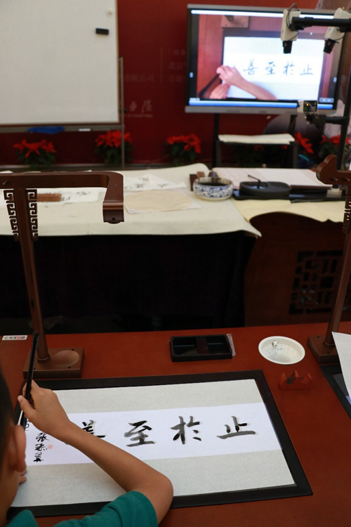華文眾合智慧書法教室的“智能課程平臺”可以幫助師生們循序漸進地進行高效高質的教與學;“興趣體驗式學習軟件”包含識字體、拼字體等小游戲,對提高書法學習興趣有很大幫助;內置歷代碑帖資源與書法家書寫示范;還有可輸出作品的集字創作模式……課堂上,師生們對這種新的書法教學工具有了更加深入的了解和一些新奇的體會。