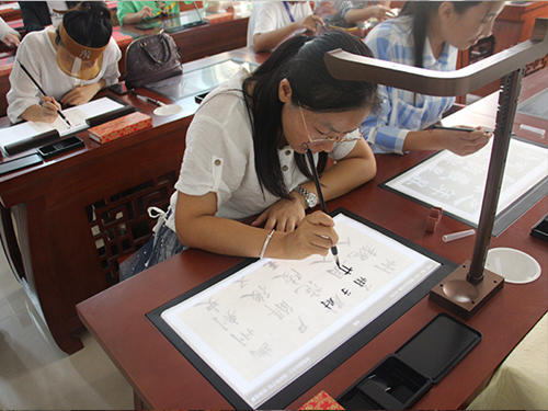 硬件方面,華文眾合歷時(shí)四年成功研制出交互式數(shù)字臨摹臺(tái),解決了書法臨摹方面的難題,在臨摹臺(tái)上鋪上宣紙就可以用毛筆、墨汁高清臨摹任意字帖和歷代書法家真跡,既降低了書法學(xué)習(xí)門檻,又可以幫助學(xué)生建立書法學(xué)習(xí)的自信心和自豪感。