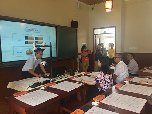 8月30日,峨眉山市第二小學華文眾合智慧書法教室竣工,市長吳小怡與當地教育局、各名校代表共同前往參觀。吳小怡詳細詢問了教室使用細節,同行各位名校代表認真學習、拍攝記錄,對這種新型智慧書法教育設備高度認可、紛紛稱贊。