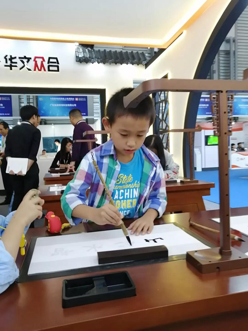 9月28日,2019中國國際教育裝備(上海)博覽會在上海新國際博覽中心盛大舉行。華文眾合攜第五代智慧書法教室參展,吸引國內(nèi)外觀眾駐足體驗(yàn)。