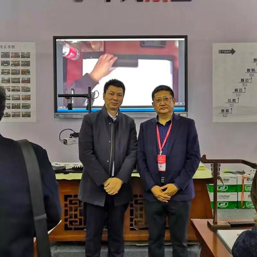 寧夏教育裝備行業協會會長黃樺(右)蒞臨華文眾合展位