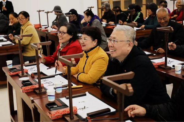 在智慧書法教室,老同志們饒有興致地提筆行文,感受現(xiàn)代科技賦予古典書法藝術(shù)的新體驗。當看到筆法演示和個人作品實時傳輸至大屏幕時,老同志們對高超的科技、先進的設備贊不絕口。