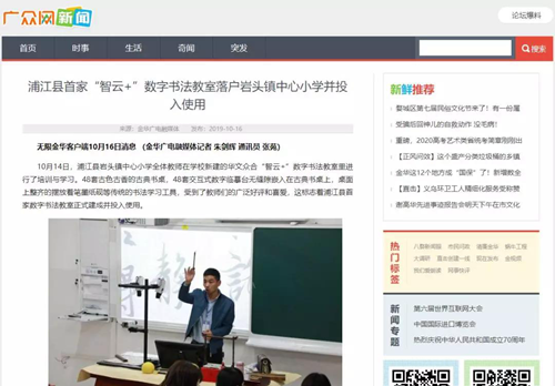 近日,浙江省浦江縣首家數(shù)字書法教室落戶巖頭鎮(zhèn)中心小學,獲金華廣電融媒體報道。