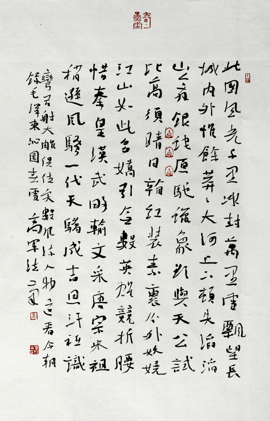 高軍法這位來自山東的文化戰(zhàn)士,四十年前就加入到了傳承民族文化的書法創(chuàng)作隊伍之中。1987年畢業(yè)于中國書畫研究社高研班,自修首都師范大學(xué)書法專業(yè)。其書法從唐楷入手,追研“二王”書風(fēng),廣搜博取,師古不泥,碑帖兼容,形成以澀筆求遒勁、以慢筆求靈動、以潤筆求雋秀的個人藝術(shù)風(fēng)格,反映出他對古今書風(fēng)的借鑒吸收和消化利用,以獨特的藝術(shù)風(fēng)貌,在當(dāng)今書法界占有一席之地。