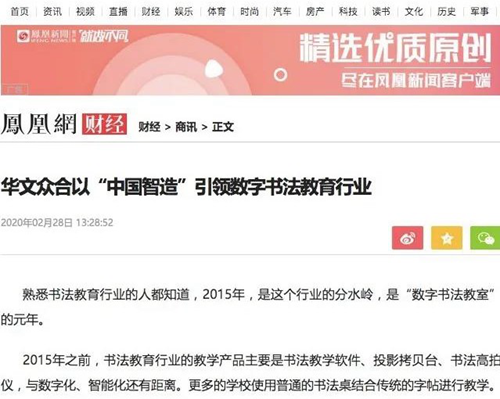 鳳凰網:華文眾合以“中國智造”引領數字書法教育行業