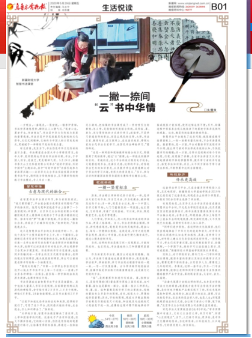 2019年5月29日,《烏魯木齊晚報》對華文眾合智慧書法教室做了一個整版的報道。