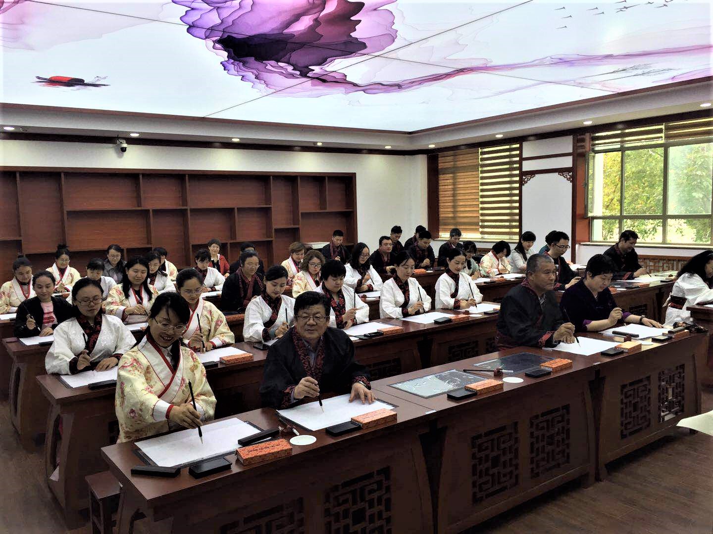 “同學(xué)們進(jìn)步很快。在這樣的文化氛圍里,他們很直觀地體驗了中華文化的優(yōu)美和宏大,對中華文化的認(rèn)同感和認(rèn)知也更加感性、具象,這種學(xué)習(xí)方式,對年輕人建立文化自信起到良好作用,一些傳統(tǒng)節(jié)日,學(xué)生們還穿著漢服,在這間教室做節(jié)目,拍攝視頻,一個學(xué)期下來,練的字可以掛在墻上展示,很有成就感�!毙陆斀�(jīng)大學(xué)基礎(chǔ)學(xué)院副院長李果說。