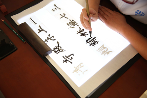 劉書貴說:“書法描摹是掌握漢字結構最有效最直接的一個方法,這一套設備對于初學書法的孩子來說,作用是很大的,尤其是在這個屏幕上臨摹古帖的時候,覆蓋了之后透明度比較高,特別清晰。學生可以直接用毛筆對著這個影子進行描摹,這套設備在這個方面做的比較好。”