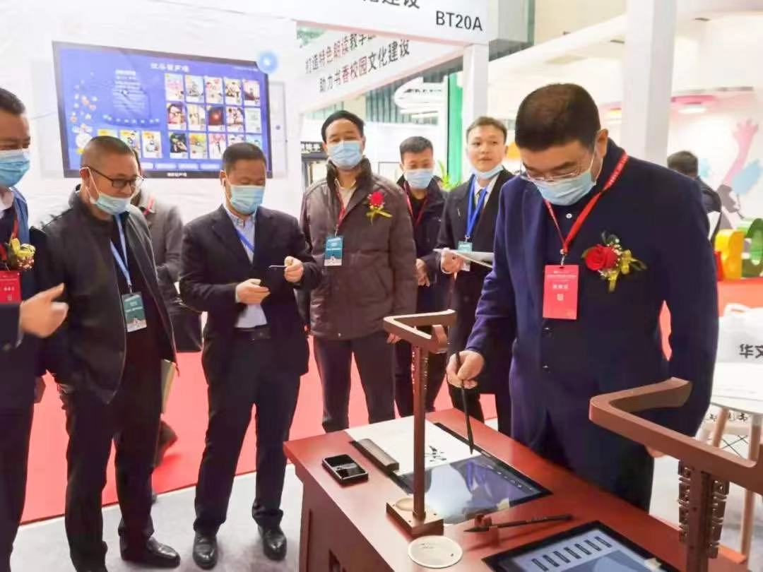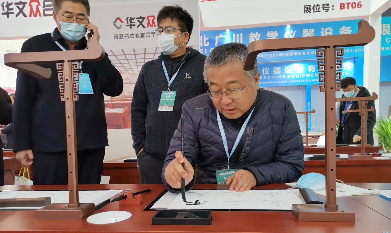 華文眾合最新推出的第七代智慧書法教室,首次在西部地區亮相,寧夏回族自治區財政廳馬處長及寧夏教育裝備行業協會會長黃樺親臨華文眾合展會參觀并與華文眾合副總裁陳方義進行了親切的指導交流,寧夏教育裝備和校園風險管理中心主任侯慶偉也前來體驗了首次亮相寧夏的第七代智慧書法教室。不少前來參展的朋友表示“早已聽說過華文眾合第七代智慧書法教室的新概念,這次華文眾合終于來到寧夏銀川讓我們一睹新技術新風采!