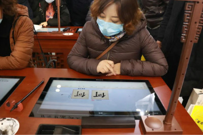 ▲ 用戶體驗(yàn)第7代智慧書(shū)法教室互動(dòng)游戲比賽