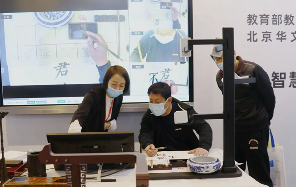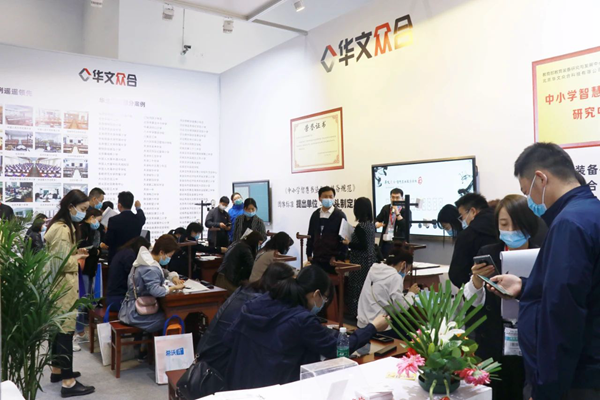 慕名而來的參觀者將華文眾合展位的氛圍一度推向高潮。參觀者或駐足觀賞或耐心聆聽或拿起毛筆寫一寫,一個個興致盎然。門庭若市的人氣、工作人員忙碌的身影、源源不斷的咨詢聲,華文眾合無疑成為這場教育裝備展示會上自帶焦點的獨特風景線。