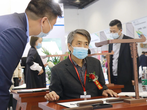 各領導在展會首日蒞臨展位現場,對華文眾合第七代智慧書法教室和粉筆教室進行了一番考察,充分肯定了華文眾合作為行業代表在書法教學設備研究上的成果,再次闡明了教育裝備行業的發展前景,為華文眾合在未來發展道路上指明新的方向。