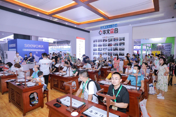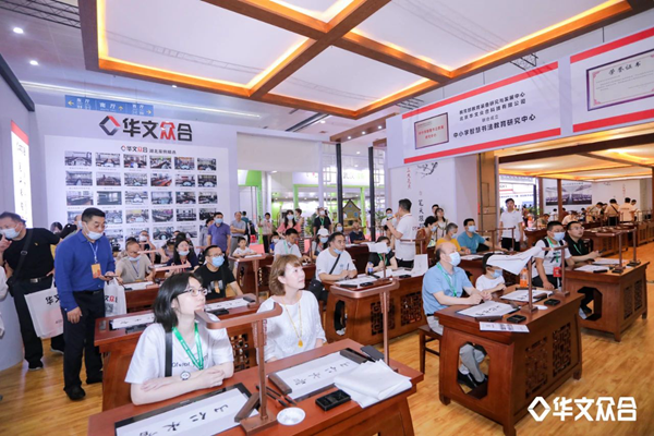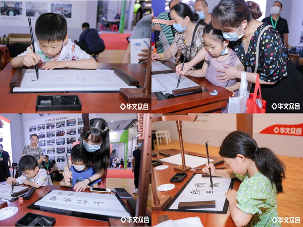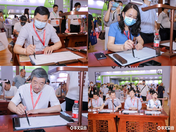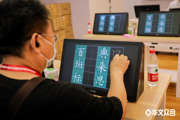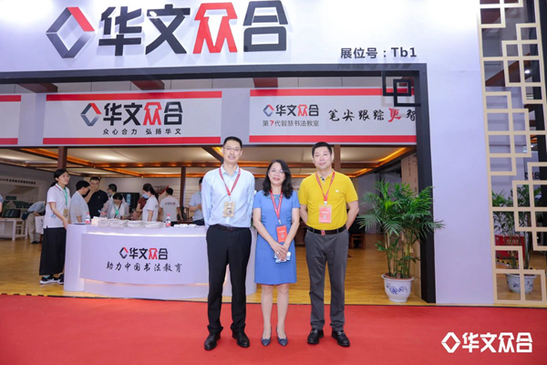 領導蒞臨華文眾合展位體驗指導華文眾合智慧書法教室