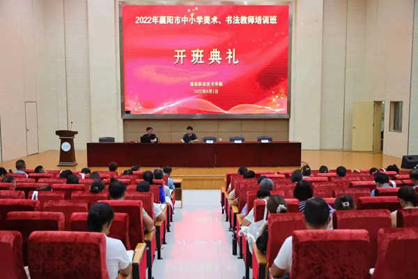 8月1日,襄陽市中小學(xué)書法、美術(shù)骨干教師研修培訓(xùn)班開班典禮在襄陽市職業(yè)技術(shù)學(xué)院師范學(xué)院學(xué)校圖書館學(xué)術(shù)報(bào)告廳隆重舉行。襄陽市書法家協(xié)會(huì)主席劉水露、師范學(xué)院院長劉紅新等參加開班儀式。來自各縣市區(qū)的200多名中小學(xué)書法、美術(shù)教師開始了為期7天的研修培訓(xùn)之旅。