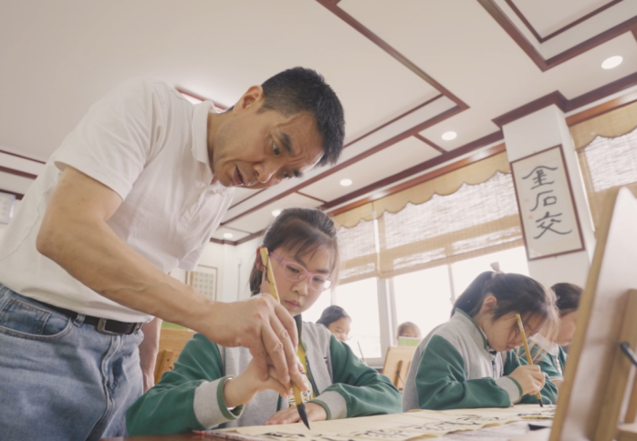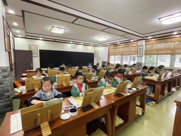 長山腳下,古海塘畔,與共和國同齡的長山小學(xué)是全國書法教育示范學(xué)校。學(xué)校以“立字立人、善學(xué)善行”為辦學(xué)理念,將“三國研藝”與各學(xué)科教學(xué)有機結(jié)合,積極踐行“長小古韻”文化育人的教育新路徑。蕭山區(qū)長山小學(xué)圍繞“傳統(tǒng)與科技相融合”的教學(xué)理念,加大教育裝備投入,為學(xué)生安裝了華文眾合智慧書法教室,將傳統(tǒng)書法教學(xué)與現(xiàn)代數(shù)字技術(shù)相融合,為書法教學(xué)注入新活力。