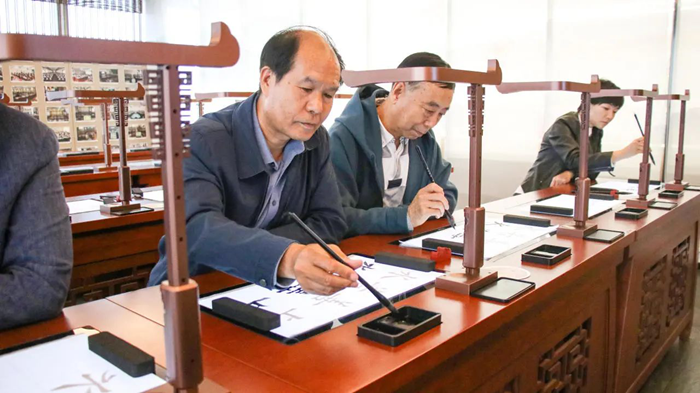 在交流會的尾聲,協會領導們參觀并體驗了華文眾合智慧書法教室。