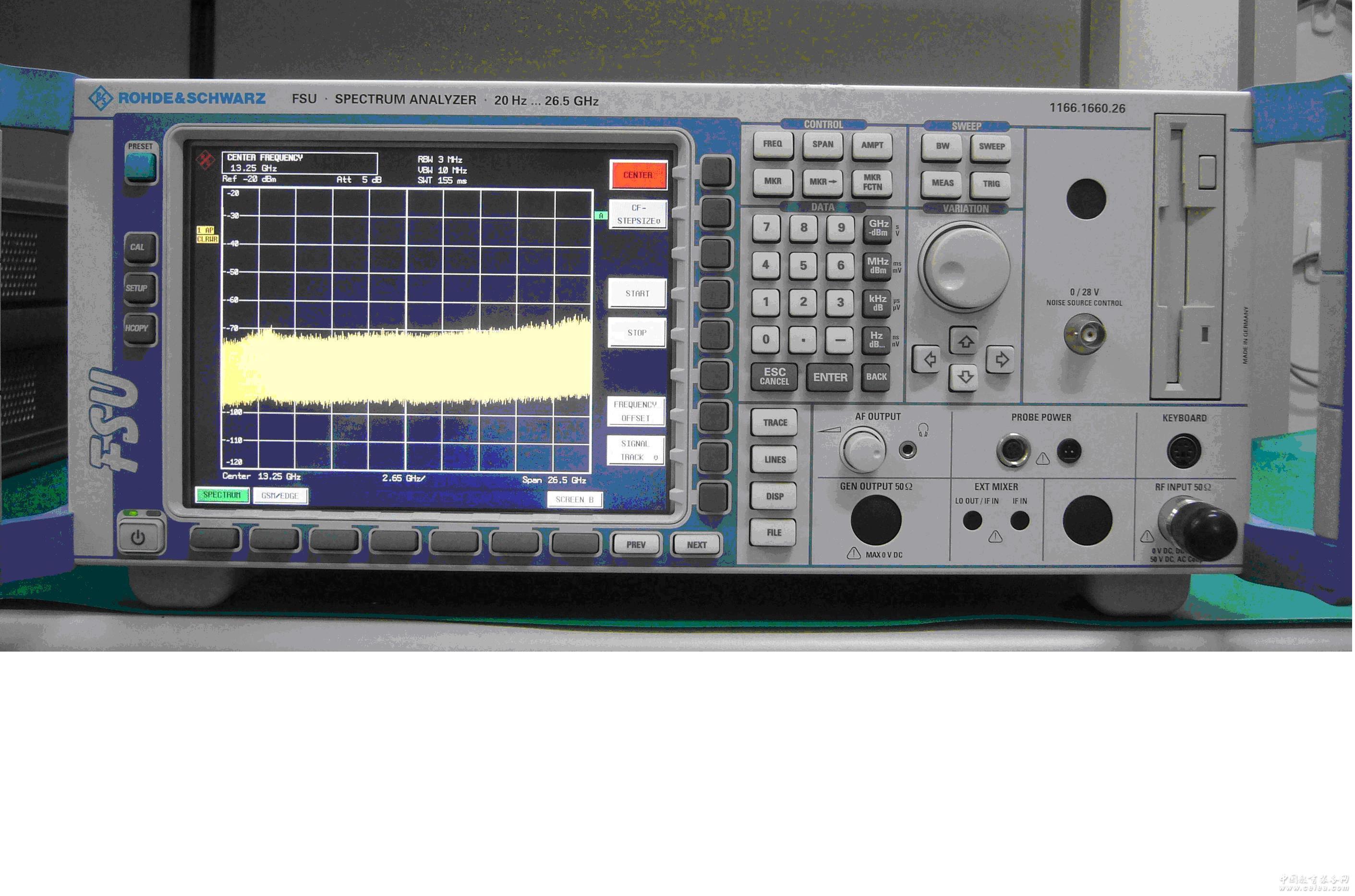 FSU43 頻譜分析儀 主要特點 頻率范圍 20 Hz ~ 3.6 GHz、43 GHz (使用外部混頻器可達到 110 GHz/1 THz) 卓越的射頻性能 相位噪聲低 -- –128 dBc (1 Hz),10 kHz載波偏置下的典型值為–133 dBc (1 Hz) DANL –158 dBm (1 Hz) 三階截止點(TOI)典型值 +25 dBm 分辨率帶寬 1 Hz ~ 50 MHz 動態范圍最高,例如 3GPP ACLR 測量時高達 84 dB 采用預放 (R&S®FSU-B24) 測量 DANL 時 典型值–168 dBm (1 Hz),20 GHz 時 典型值–155 dBm (1 Hz),50 GHz 時 TOI、MC ACP(R)、OBW、CCDF、APD 等測量功能 滿足蜂窩標準、無線連接性標準和一般性標準的測量應用,例如相位噪聲、噪聲系數、矢量信號分析等等 |