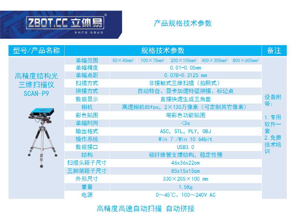 立體易SCAN-P9結構光三維3D掃描儀