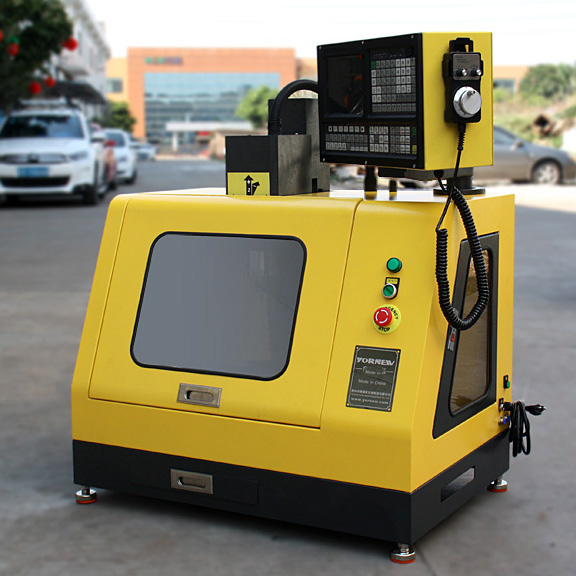 顯著特點 1、 適合校園創客、創新工作室科技制作加工零件、理實一體化專業數控培訓、企業科研單位加工小零件。 2、 配置專業級工業級面板數控系統(機器帶有面板系統,不需要另外電腦),不再擔心機床出故障,更安全、更穩定、更耐用,帶圖形仿真功能,完善的自診斷功能,實時顯示出現異常立即報警,保證操作安全性,帶電子手輪,方便手動操作,可加裝第四軸數控分度頭,功能更強大,機床雖小、五臟俱全。 3、 使用方法簡易和專業結合,即滿足初學數控人群入門,又滿足職業學習數控操作人,可以直用第三方編程軟件圖形直接生產G代碼程序,也可以手工編程,加工材料廣泛(鐵、銅、鋁、塑料、有機玻璃等材料),加工精度高,機器堅固穩定耐用。 4、 采用透明有機玻璃與金屬鈑金全封閉結構,使用220伏電壓、提高使用的安全性和觀摩性,采用精選的優質鑄鐵材料鑄造、采用高精度研磨滾珠絲桿,保證機器加工精度,占地0.5平方米,具有實際加工能力強大。 5、 采用ISO標準G代碼編程,支持M代碼及S代碼,全面兼容FANUC,三菱G代碼和多種CAD/CAM軟件( MasterCAM、UG、CAXA等軟件編程等),圖形化編程。