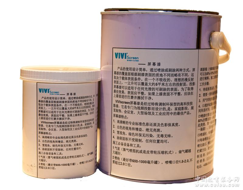 VIVISCREEN屏幕漆是經過特殊調制的高科技反光漆,它是專門為視頻投影產業而設計的。它可以使任何人將任何一個平滑的表面轉變成一個高性能的投影屏幕。它可被涂成任何尺寸/形狀的屏幕,它無須任何特殊工具和技能就可以操作。是家庭影院、展售點的展示、會議室、大型場館如:音樂廳、體育場、博物館及群體場所顯示的最佳產品。