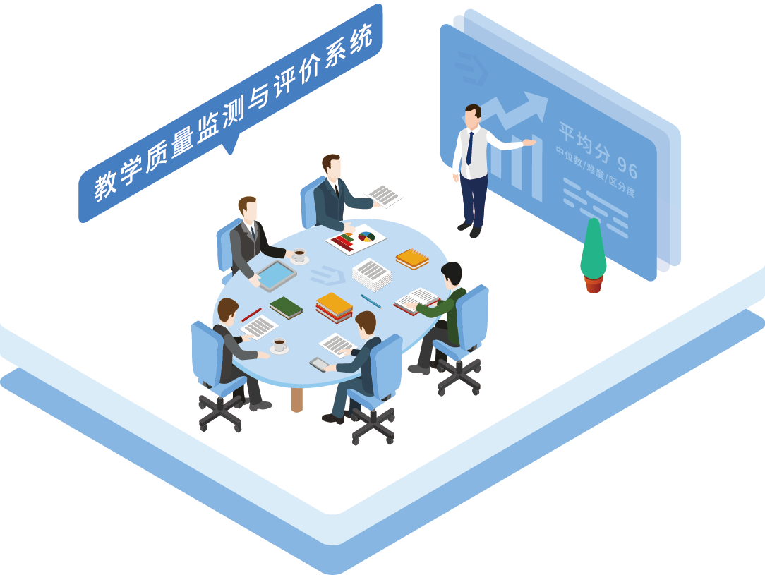 教學質量監(jiān)測與評價系統(tǒng)是集“教、學、管、測、評、存、用”于一體的中小學智慧教育管理與監(jiān)控評價系統(tǒng)。系統(tǒng)主要基于網(wǎng)絡閱卷系統(tǒng)、小測評卷管理系統(tǒng)、智慧課堂得出的基礎數(shù)據(jù),生成各種統(tǒng)計數(shù)據(jù),讓用戶簡單科學地完成考試質量分析、教學質量跟蹤、試題質量分析、教學質量評估、高考分析等,從而解決教育信息隱形化、決策粗放化、資源缺失等難題,提高教學質量與綜合競爭力。