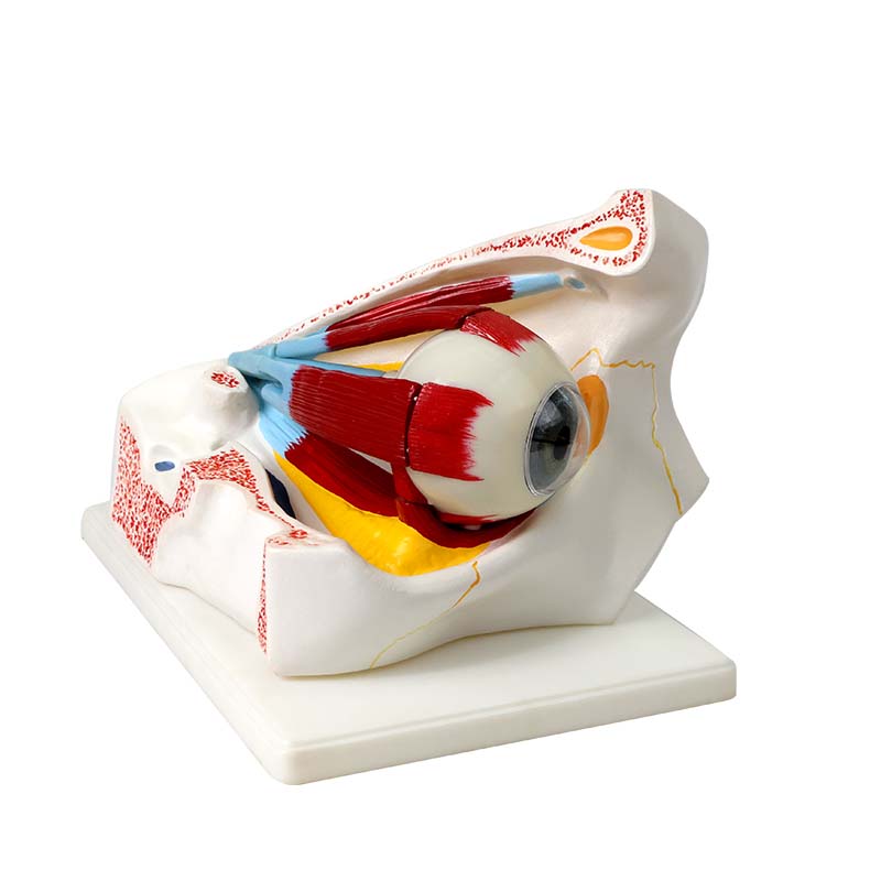 本模型包含完整眼眶結構與眼球,共 8 部件可拆卸組裝,精細還原眼球、眼外肌、淚器、視神經、血管等組織,清晰展示眼球在眼眶內的位置及周圍附屬結構。部件拆分順暢、標識清晰,適用于醫學教學、眼科科普及中小學生物課堂演示。
