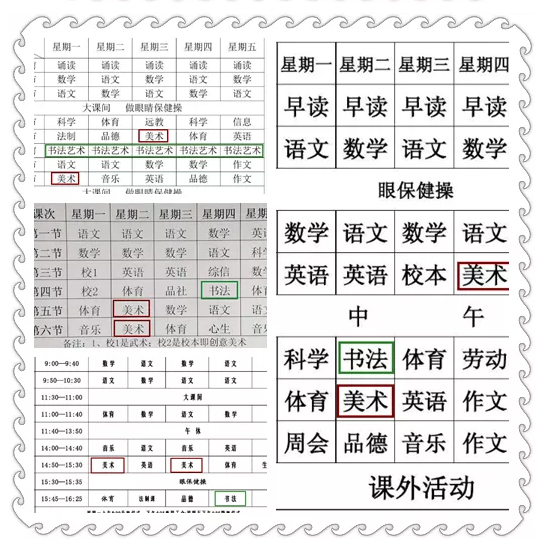 結果顯示:課表上書法和美術每周分別為1節和2節......
