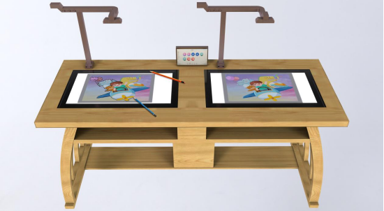 2、實木桌:沙畫臺嵌入桌內6MM并上蓋亞克力繪畫板,保障學校沙畫課與普通繪畫連堂課的切換方便;