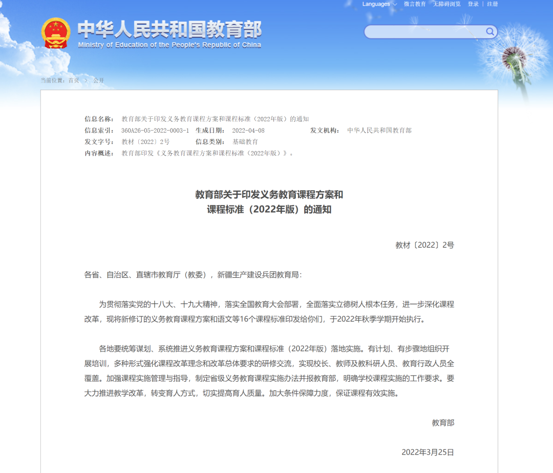 教育部印發《義務教育藝術課程標準(2022年版)》和《義務教育勞動課程標準(2022年版)》,都十分重視非遺課程在義務教育中課時與占比,分別在美術學科中的學習任務5和勞動的十項任務群中均設置。