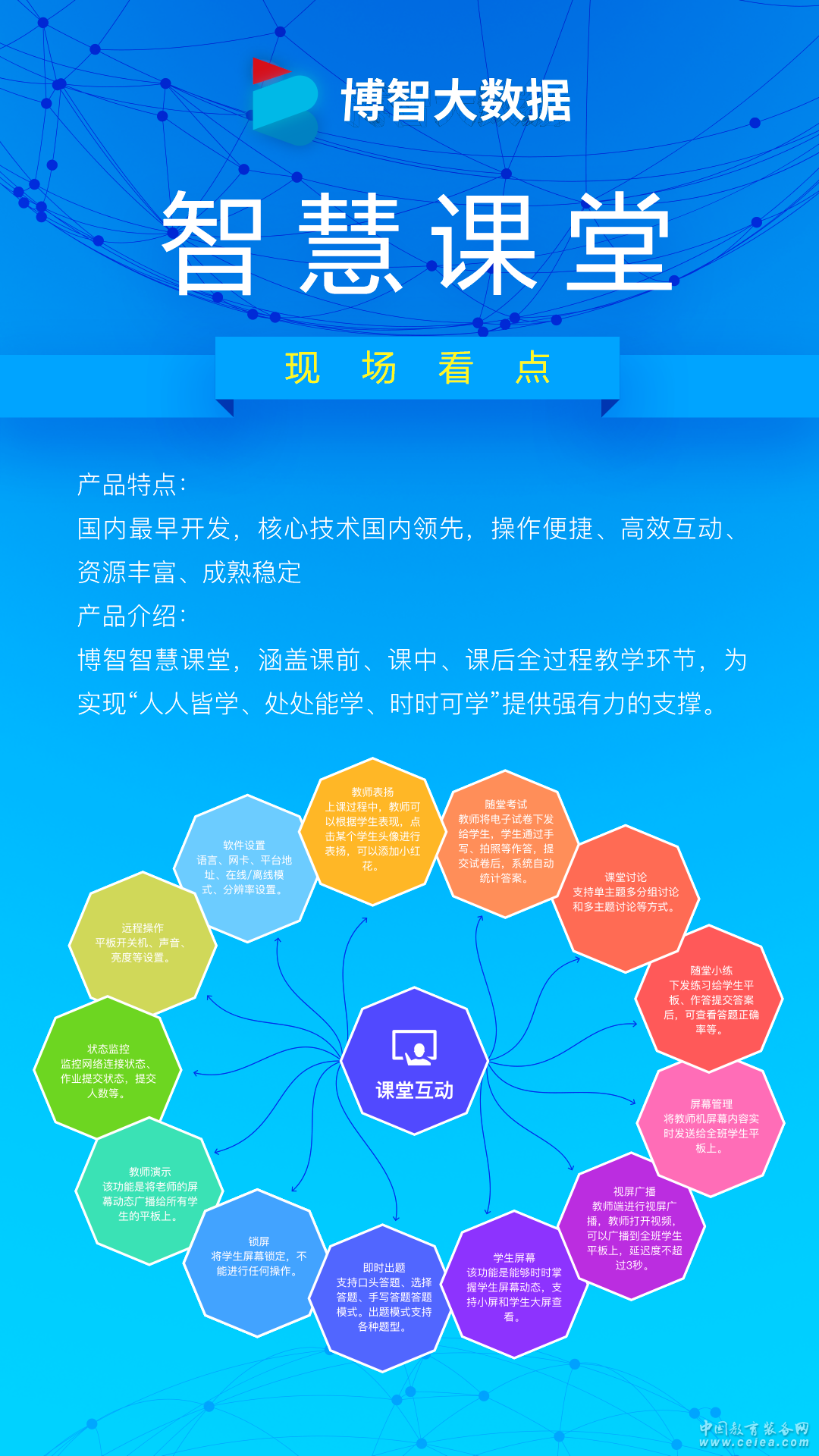 產品詳細介紹博智智慧課堂,涵蓋課前、課中、課后全過程教學環(huán)節(jié),為實現(xiàn)“人人皆學、處處能學、時時可學”提供強有力的支撐。