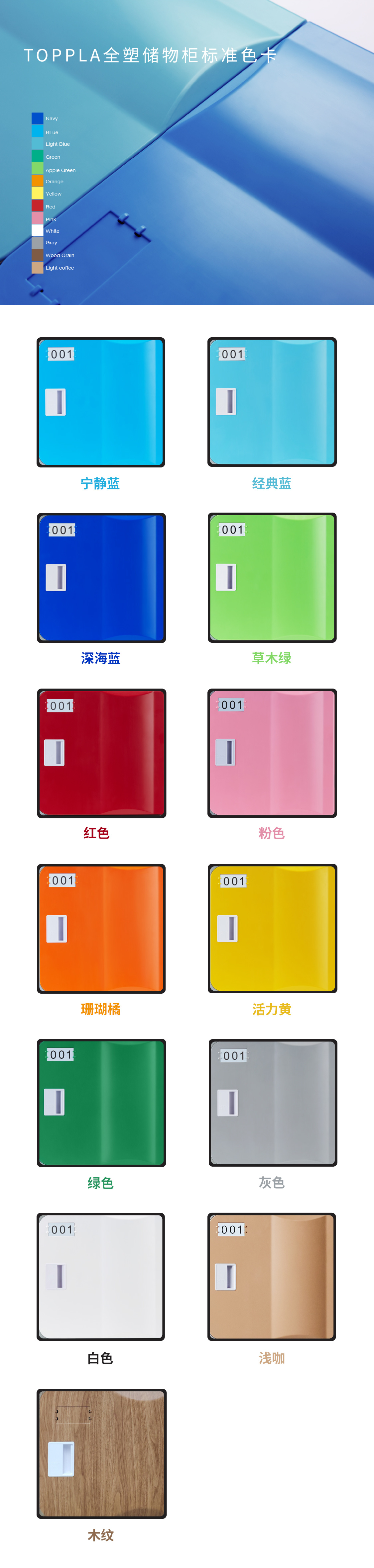 色彩搭配的力量不僅限于流行色之上,托普拉為二代ABS塑料柜提供了13種標準色進行搭配組合,用色彩為ABS塑料柜賦予時尚設計力,為大眾提供時尚、多元的一體化儲物柜解決方案,讓生活更便捷、環保。