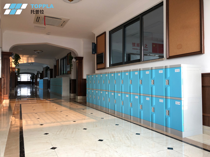 本解決方案使用場景為校園小學(xué)部,選取了托普拉第一代全塑儲(chǔ)物柜淺藍(lán)色T-320S作為書包柜使用。考慮到孩子身高以及教室窗戶等因素,以2門一列、多列組合使用,置于教室外側(cè)走廊,便于小學(xué)生存儲(chǔ)物品。