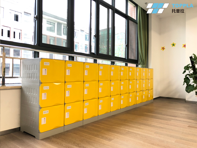本書包柜解決方案采用托普拉第二代全塑儲(chǔ)物柜JX-382E,以3門1列、多列組合置于教室后側(cè)閑余空間,合理利用教室內(nèi)部空間,便于孩子物品存取。