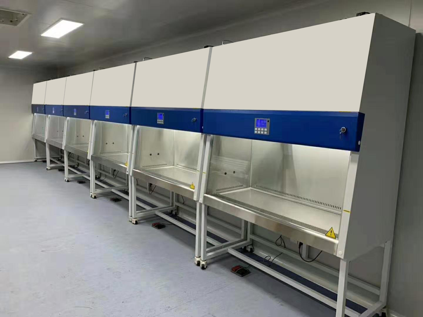 生物安全柜產品介紹: 1、LCD采用動態顯示技術,畫面亮度均勻一致,動態的反映儀器設備的工作情況。使操作者有了更直觀的感覺。 2、遙控器解決近距離操作對使用者不方便的問題,體積小、重量輕,可以在距生物安全柜前6米、30度的范圍內靈活控制生物安全柜的全部功能。 3、前玻璃門窗為電動控制,用遙控器、腳踏開關和面板輕觸按鍵完全可以隨意控制,無需使用者與玻璃門窗的直接接觸。 4、增加了特有的預約定時功能,解決等待開機或關機的過程,能夠在殺菌消毒后定時關機,預約開機風機運轉或預約開機紫外線殺菌功能,設定時間范圍在0—99小時59分。 5、生物安全柜整個裝置的左右及后部墻體均為負壓風道,使工作區與外部環境形成氣幕及箱體雙層隔離,同時工作區被負壓包圍,保證產品不發生泄漏;箱體部分采用冷軋鋼板,增強了結構強度;工作區臺面及裝置內側為不銹鋼材質,美觀耐腐;支架由金屬組成,表面靜電噴涂;控制面板采用觸摸式開關,使機器外形美觀,易于操作。 6、數字式壓差顯示、數字式風速顯示和電子報警系統。 7、風速波動超過20%報警,前窗高于或低于安全高度報警。 8、實時時鐘顯示,工作區溫濕度顯示。