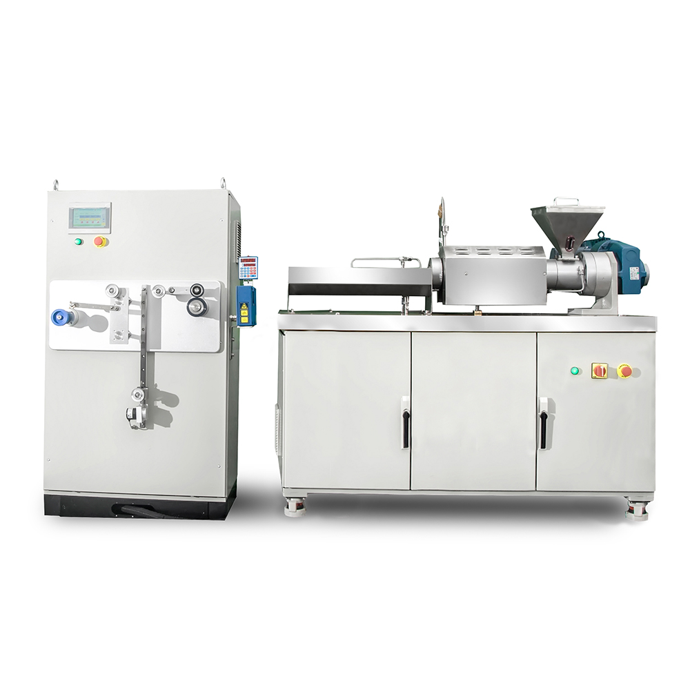 桌面3D打印耗材實驗機由精密螺桿擠出機、微型噴淋水槽、測徑儀、精密整齊排線裝置組成,配有不同尺寸口模可在實驗室測試聚合物的性能。PLC控制操作方便,占地面積少。