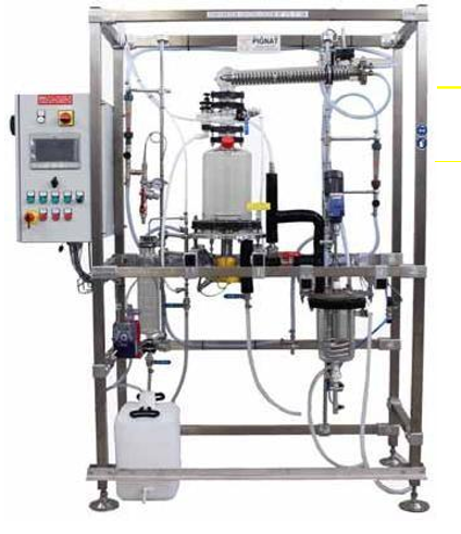 通用規范 蒸發段: 20升進料罐。 進料泵(0至16升/小時)。 玻璃加熱器10L,不銹鋼電阻2KW。 ND 50玻璃和不銹鋼盤管冷凝器。 刻度玻璃接收器,2升。 結晶段: ND150的玻璃容器,不銹鋼螺旋攪拌器,60轉500轉/分鐘。浸水不銹鋼盤管用于冷水循環。 冷水循環