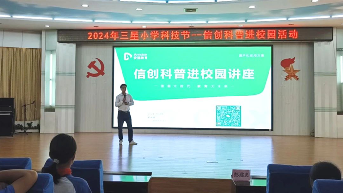 在開(kāi)幕式現(xiàn)場(chǎng),安道教育售前支持部總監(jiān)黎成勇發(fā)表題為《信創(chuàng)大時(shí)代 · 教育大未來(lái)》的信創(chuàng)科普進(jìn)校園主題演講,他分別從實(shí)施背景、政策解讀、信創(chuàng)優(yōu)勢(shì)等多個(gè)維度闡述信創(chuàng)大時(shí)代的背景下,安道教育提供的信創(chuàng)教室解決方案及成功案例。從宏觀到微觀闡述安道教育是如何遵循國(guó)家教育政策方向,不斷推動(dòng)智慧教育裝備國(guó)產(chǎn)化。