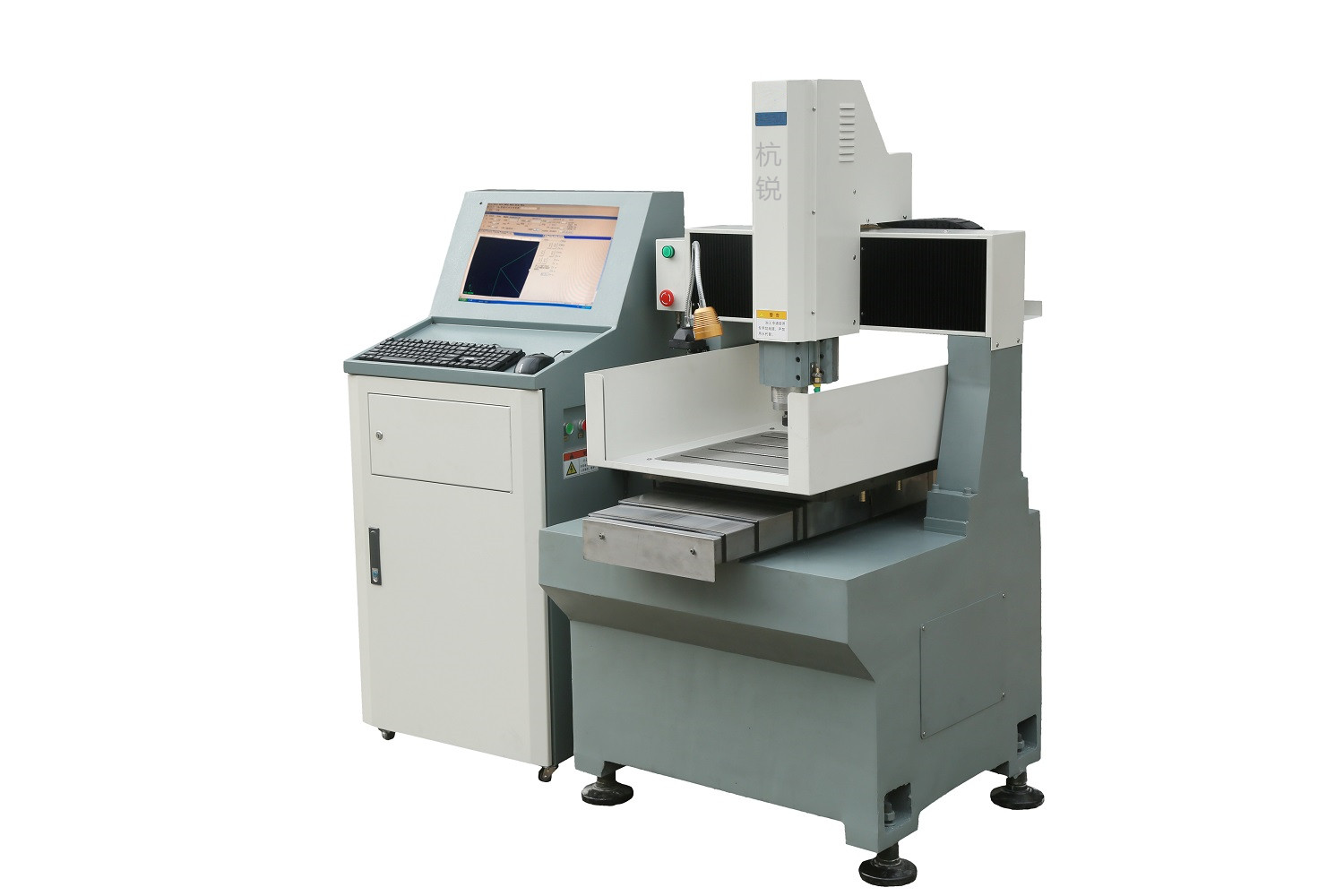 產(chǎn)品詳細(xì)介紹機(jī)器簡介: 特點(diǎn): 整機(jī)采用鑄造件;精密直線矩形導(dǎo)軌,有預(yù)緊、剛性好、高精密;研磨級精密滾珠絲杠有預(yù)緊,高精密;雕刻控制系統(tǒng)軟件操作簡單,易學(xué)易用,易于掌握,接口采用國際標(biāo)準(zhǔn)G代碼指令,兼容國內(nèi)、外編程軟件。驅(qū)動電機(jī)采用新型混合步進(jìn),具有編碼反饋功能,大大提高機(jī)床穩(wěn)定性。應(yīng)用:主要適用燙金模、高頻模、熱切模、模具刻字、有機(jī)玻璃、PC加工、浮雕等DJ440-NB 機(jī)床主要配置單復(fù)雜工藝加工。 序號 配套件名稱 規(guī)格及參數(shù) 1 控制系統(tǒng) 上海維宏NK260 2 臺灣上銀精密滾珠絲桿 X、Y、Z軸 Φ20 mm 3 臺灣上銀直線導(dǎo)軌 X、Y、Z軸 H25mm 4 混合伺服電機(jī) 創(chuàng)偉60(江蘇) 5 混合伺服驅(qū)動 創(chuàng)偉CWDS660(江蘇) 6 精密高速電主軸功率 華雕2.2Kw(江蘇) 7 主軸轉(zhuǎn)速范圍 0-24000rpm(無級變速) 8 NSK精密級專用絲桿組合配對軸承 7002 P5/6002 9 高頻變頻器 匯川2.2Kw(深圳) 10 國產(chǎn)電子手輪 明三益(江蘇) 11 風(fēng)冷機(jī) 耀鵬(江蘇) 12 德力西電器組件 13 刀具夾頭規(guī)格 ER20-3.175/4/6mm(可選配) 14 最大夾刀范圍 13mm 15 自動潤滑油泵 0.5L 16 X、Y、Z軸運(yùn)動定位精度 0.01mm 17 X、Y、Z軸重復(fù)定位精度 0.01mm 18 X、Y、Z軸最大工作行程 400×400×110mm 19 Z軸進(jìn)料高度 180mm 20 工作臺尺寸 480×480mm 21 工作平臺平面度 ≤0.02mm 22 X、Y垂直度 0.015/400mm 23 主軸鼻端到工作臺距離 30-140mm 24 快速移動速度 10m/min 25 最高切削進(jìn)給速度 8m/min 26 工作電壓 單相220V/50Hz±10% 27 機(jī)床外形尺寸 910×1010×1510mm 28 電柜外形尺寸 600×580×1350mm 29 機(jī)床鈑金外殼 半罩 30 床體重量 900Kg |