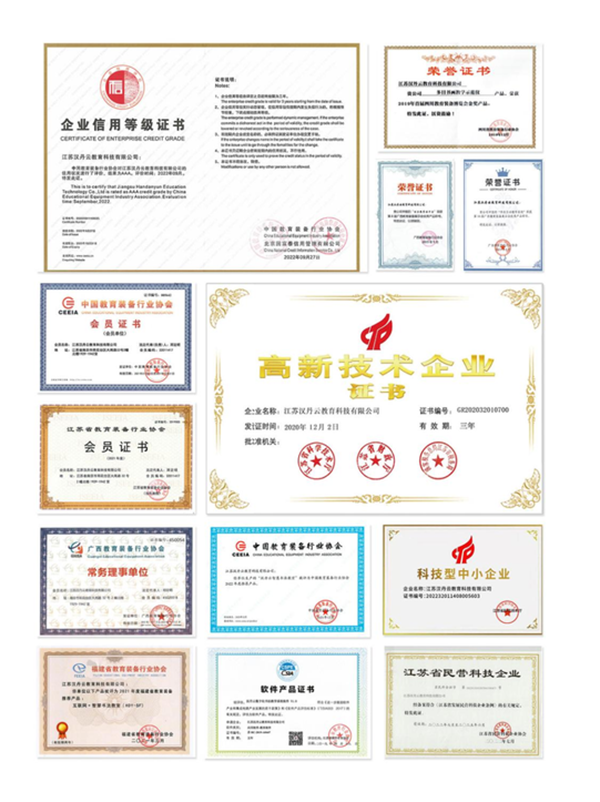 江蘇漢丹云教育科技有限公司是一家致力于數字化教育云平臺建設和大數據中心構建的高新技術企業,主要從事傳統文化與信息技術的創新融合研究,總部位于中國南京軟件谷,是國家級高新技術企業、軟件企業、江蘇省民營科技企業、江蘇省科技型中小企業、江蘇省第七批質量提升重點企業、南京市創新型中小企業;系中國教育裝備行業鉆石會員單位、江蘇省教育裝備行業理事單位、廣西教育裝備行業常務理事單位;企業已通過ISO9001質量管理體系、ISO14001環境管理體系、ISO45001職業健康安全管理體系、ISO27001