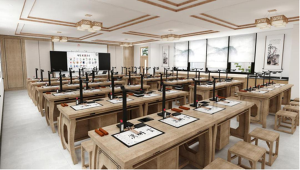 漢丹云智慧書法教室實現了書法教學場景的全過程數字化,借助自主研發的各類軟硬件系統,從例字教學到作業電子化一鍵歸檔,實現書法課堂教學評練測五大環節的數字化場景支撐,解決學校書法教師師資不足問題。