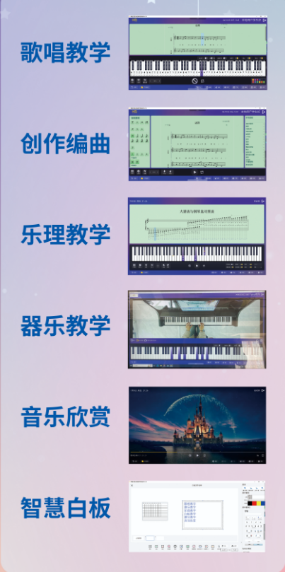 智慧云音樂教室教學(xué)系統(tǒng)為集成化的高效教學(xué)軟件將音樂課程與數(shù)字化相結(jié)合,滿足教學(xué)大綱的要求,涵蓋歌唱教學(xué)、創(chuàng)作編曲、樂理教學(xué)、器樂教學(xué)、音樂欣賞五大模塊,讓學(xué)生感受、欣賞、表現(xiàn)、創(chuàng)造音樂。智慧白板教學(xué)服務(wù)于教師,可用于自主備課及課堂授課。軟件為賬號(hào)制和本地化登錄兩種方式,靈活適用于多種教學(xué)場(chǎng)景。