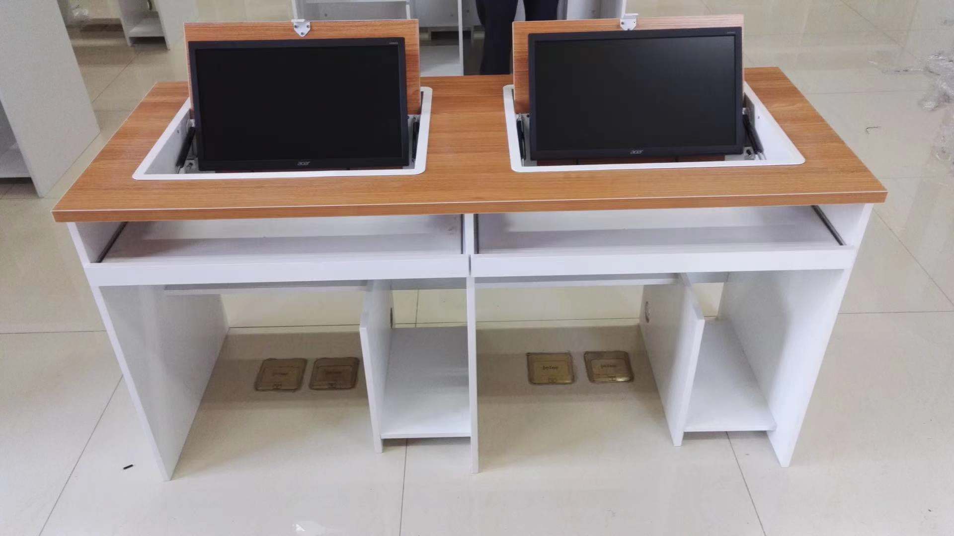 隱藏式翻轉電腦桌學生電教室機房培訓桌
