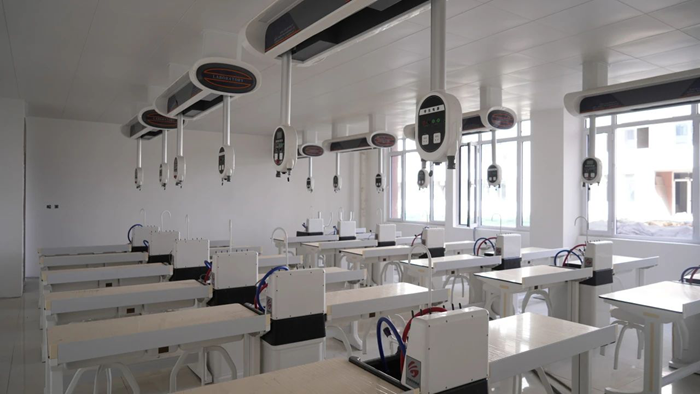 該項目作為邢臺市濱江高級中學提升教學質量、強化實踐教學能力的重要舉措,涵蓋了物理、化學、生物共6間新型吊裝實驗室建設。齊魯宏博教育裝備集團憑借其豐富的行業經驗、先進的技術實力以及對教育需求的深刻理解,為濱江高級中學量身定制了一套集安全性、互動性、高效性于一體的實驗室解決方案。