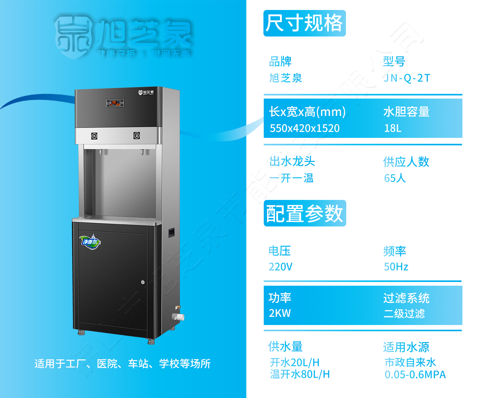 2、 智能技術配置:采用智能主控系統,可清晰的顯示機器顯示水位狀態、補水和缺水狀態,流量顯示、可預約定時開關機周六周日節假日功能;采用智能水控系統,水不開則無水流出,避免飲用生水;